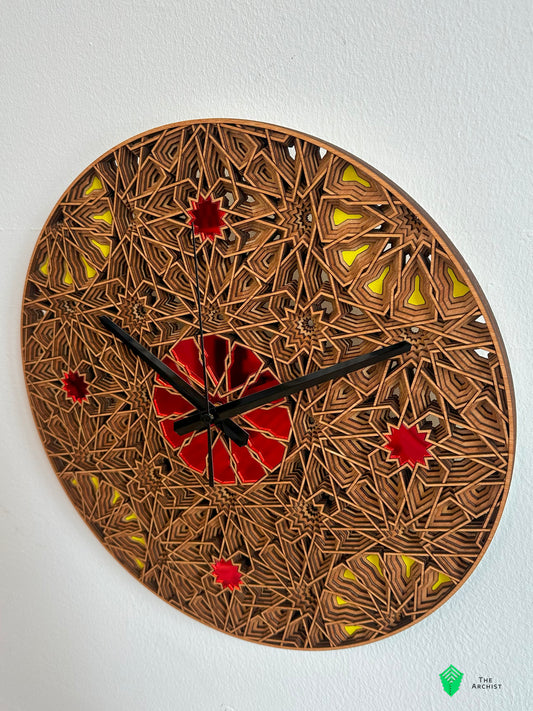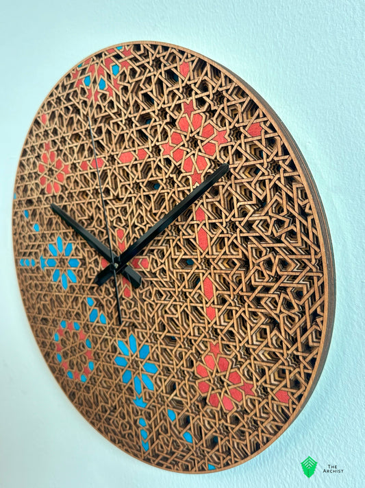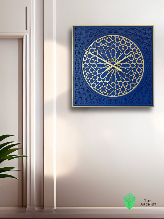 Geometric Pattered Clock in Dark Navy Blue and Gold