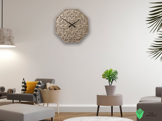 Geometric Pattered Clock in Dark Navy Blue and Gold